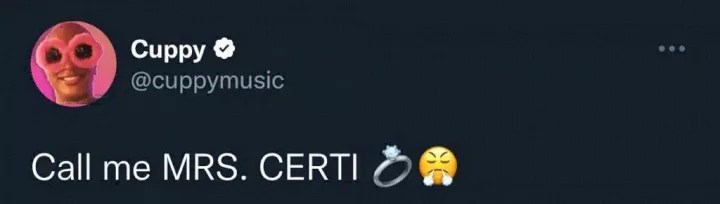 In a new development, Cuppy, whose real name is Florence Otedola has taken to Twitter to announce her marriage to Ryan. Cuppy adds that she can now be referred to as “Mrs. Certi”